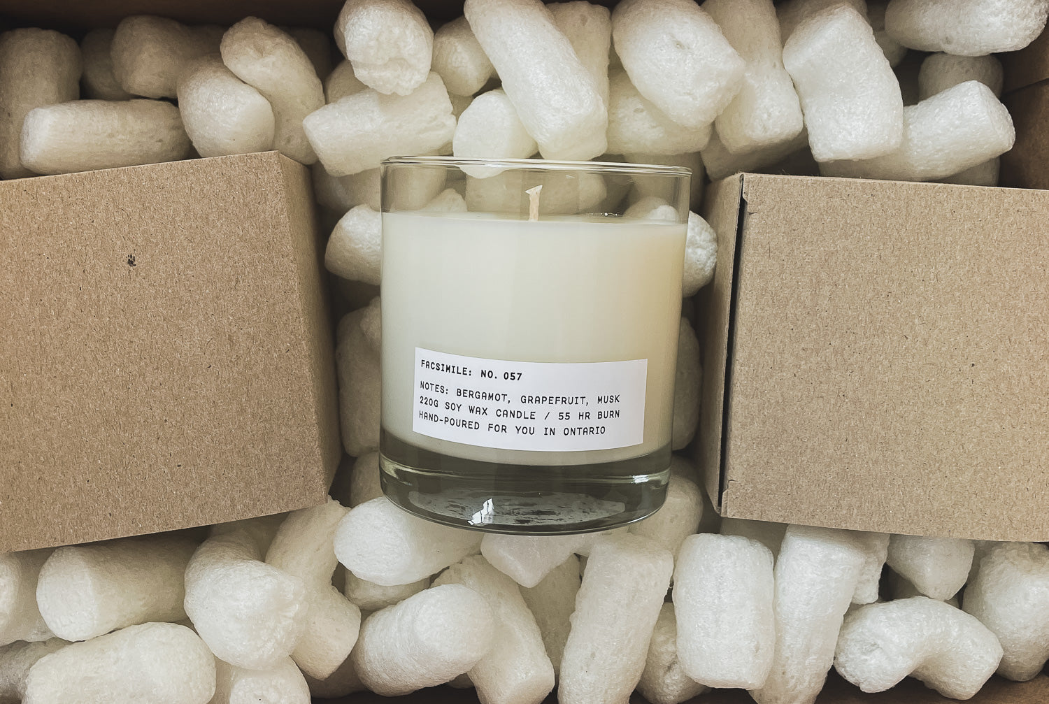 Live light: our recycled, and recyclable box means no plastic bubble wrap in your order — just starch peanuts that dissolve in water. When 1/2" of wax remains, clean our your jar with soap and water and repurpose to hold your favourite cocktail instead. ;)
